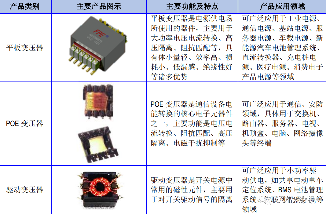 磁性元器件主要产品包括网络变压器、片式电感、功率磁性元器件,已广泛用于网络通信领域,并在新能源汽车、工业电源等领域。网络变压器是众多网络通信设备必需的基础元器件之一,在通信设备中起着传输信号、隔离高压、阻抗匹配、抑制电磁波干扰等作用。目前,公司网络变压器包括DIP(DualIn-linePackage,双列直插封装)、SMD(SurfaceMountDevices,表面贴装器件)等子类。网络变压器的主要功能是传输信号、隔离高压、阻抗匹配、抑制电磁波干扰等,是网络通讯设备的核心电子元器件之一。网络变压器由塑胶外壳、磁芯、漆包线,通过特殊的绕制方法制成,其中由磁芯和漆包线组成基本的变压器线圈,可广泛应用于网络通信领域,具体用于交换机、路由器、服务器、机顶盒、电脑、网络电视、网络摄像头等设备。片式电感作为网络通信、消费电子、安防设备、汽车电子等电子设备的基础电子元件,是利用电磁电路设计技术,搭配精密自动化绕线技术生产的新型SMD磁性元器件,采用成熟的SMT技术发展出来的全自动化产品。片式电感符合电子产品“短小轻薄”的发展趋势,网络通信、消费电子、安防设备、汽车电子等产业的快速发展对片式电感的需求量将大幅增长。片式电感利用电磁电路设计技术,搭配精密自动化绕线技术生产的新型SMD磁性元器件,采用成熟的SMT技术发展出来的全自动化产品。主要用于筛选信号、过滤噪声、稳定电流及抑制电磁波干扰等。可广泛应用于网络通信、消费电子、安防设备等领域,具体用于路由器、服务器、网络摄像头、平板电脑、网络电视等设备。功率磁性元器件是电源装置的基础元器件之一,在电子电路中起着电压变换、能量转移、储能滤波、隔离高压或筛选信号、稳定电流及抑制电磁波干扰的作用。磁性元器件是实现电能和磁能相互转换的电子元器件,属于电子元器件行业领域的重要分支,是保证电器电子设备稳定工作的重要基础元器件。磁性元器件应用领域非常广泛,覆盖了网络通信、汽车电子、工业电源、消费电子、安防设备、智能家居、医疗电子等众多领域。磁性元器件品类众多,每种产品的型号和规格均存在一定差异。得益于应用领域的广泛性,磁性元器件未来具有良好的市场发展空间。在网络通信领域,磁性元器件主要应用于路由器、交换机、服务器、机顶盒、光纤收发器、网络电视、终端通信设备等网络通信产品;新能源汽车领域,新能源汽车配置电池、电机、电控等电子系统,车载电子产品应用场景较传统燃油车更加广阔,新能源汽车电子磁性元器件使用率更高,同时新能源汽车充电桩也会涉及磁性元器件的应用;在工业电源领域,通信电源、服务器电源、电力电源、医疗电源等电源设备都需要磁性元器件;在消费电子领域,智能手机、平板电脑、笔记本电脑等消费电子产品的电源模块、充电器都会涉及磁性元器件的应用。磁性元器件是电子设备的基础元器件之一,在电子元器件产业中具有重要的地位,属于电子设备制造产业链的上游,其市场需求及发展趋势与下游应用领域的发展紧密相关。磁性元器件下游应用领域包括网络通信、新能源汽车、工业电源、安防设备、消费电子等,下游产品需求的快速增长直接带动了市场对磁性元器件的需求。全球网络通信设备市场规模整体呈增长趋势,而我国网络通信设备市场增速更快。网络通信设备是用于网络连接、维持数据传输的设备,属于信息化建设所需的基础架构产品,涵盖路由器、交换机、服务器、机顶盒、5G基站等设备。网络通信设备是磁性元器件应用的重点领域。在高质量网络连接需求迫切、Wi-Fi6技术普及与应用、国家大力推行以5G和千兆光网为代表的“双千兆网络”的背景下,路由器设备将迎来新一轮迭代更新,路由器中实现网络信号传输功能的核心组件就是网络变压器,路由器的更新换代将极大增加对磁性元器件的市场需求,推动磁性元器件的发展与技术迭代升级。Wi-Fi6路由器升级改造成为必然发展趋势,具体情况如下:第一,随着网络质量要求的不断提高,以及物联网、大数据等技术驱动联网设备的持续增加,传统Wi-Fi性能在面对新兴应用场景下显得捉襟见肘。第二,教育、医疗、制造、政府、金融等都在加快数字化转型的步伐,远程办公、线上教育、视频会议、智慧医疗等应用场景快速发展,使用网络的终端设备数量持续攀升,迫切需要强大的网络支撑达到数字通讯顺畅的用户体验,也促使Wi-Fi6技术强势发展,带动了路由器产品的升级改造。第三,我国政府大力推动5G和千兆光网建设,推动移动宽带和固定宽带双双进入千兆时代。随着千兆网络的渗透,AP端口(AccessPoint)设备将升级替代,Wi-Fi6路由器能够发挥千兆网络的速度。我国网络基础设施建设提速,会带来路由器大范围的升级换代,从而大幅增加Wi-Fi6路由器的采购需求。根据IDC数据,2017年至2020年,我国路由器市场规模由31.9亿美元增长到37.6亿美元,预计到2024年市场规模将较2020年增长23.67%,达到46.5亿美元。在5G叠加云计算、大数据、物联网、人工智能等新一代信息技术的大背景下,高清视频、VR/AR、智能交通、智慧医疗、自动驾驶等领域的数据传输和存储量呈现爆炸式增长,数据中心作为数据存储和应用的关键基础设施,其重要性越发凸显。2020年3月4日召开的中央政治局常务委员会会议提出,加快5G网