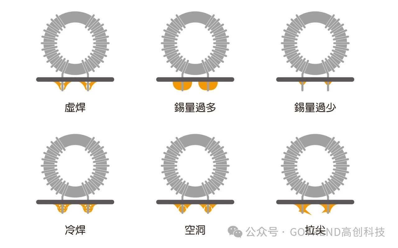 二、 焊锡出现以下情况就属于不符合标准锡点