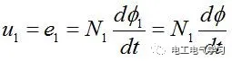 只要涉及到电磁,你不可避免地要应用到法拉第电磁感应定律,在变压器初级加上一个电压u1,根据电磁感应定律,初级线圈感应电压如下表达式,即感应电动势e1等于输入电压u1: