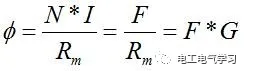 还记得磁路中的欧姆定律吗?磁动势和磁阻的商就是磁通量,这个公式的推导也很简单,基础原理是安培环路定理,⑧式中Rm是磁阻,G是磁导(前面⑤式中有定义式),同一个磁芯中这是个常量