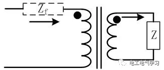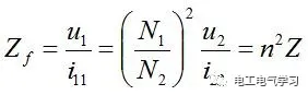 反射阻抗,当输出带负载时,负载通过变压器取能量,输入电流会相应增加,因此变压器的等效输入阻抗是如下式子: